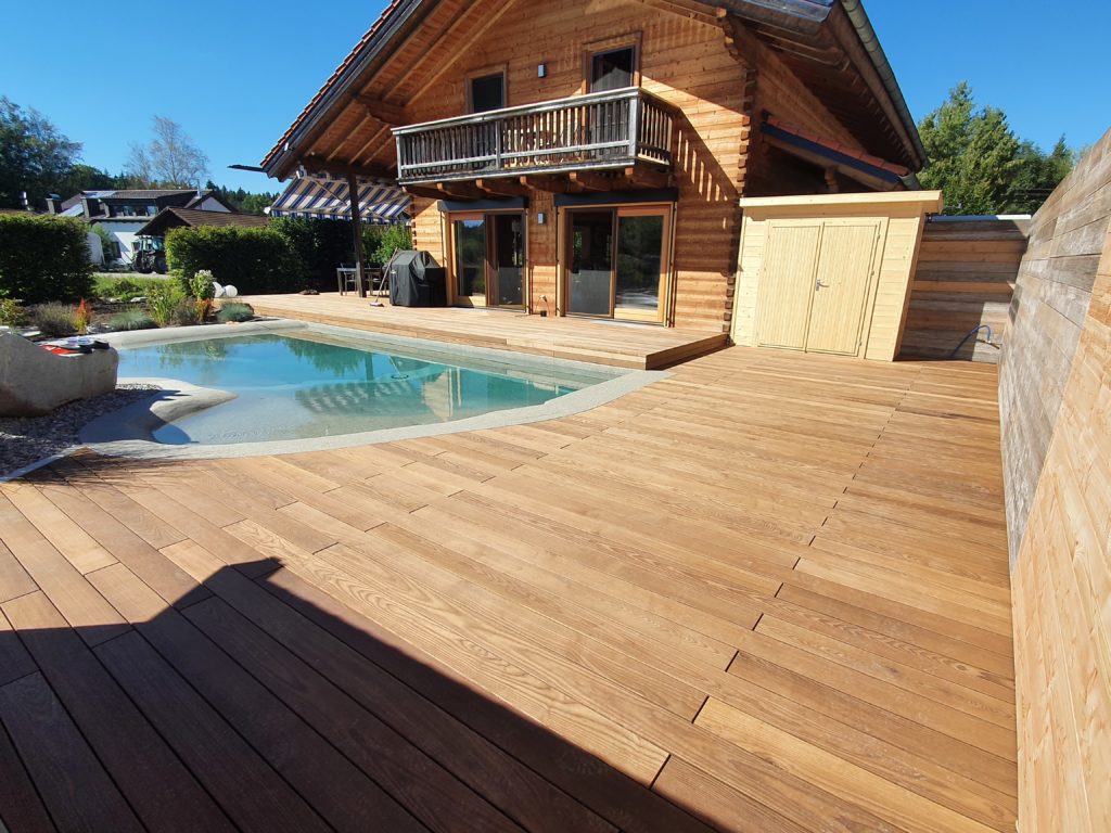 - Erweitern Sie Ihr Wohnzimmer ins Grüne – mit einer langlebigen, stilvollen Holzterrasse zum Wohlfühlen.