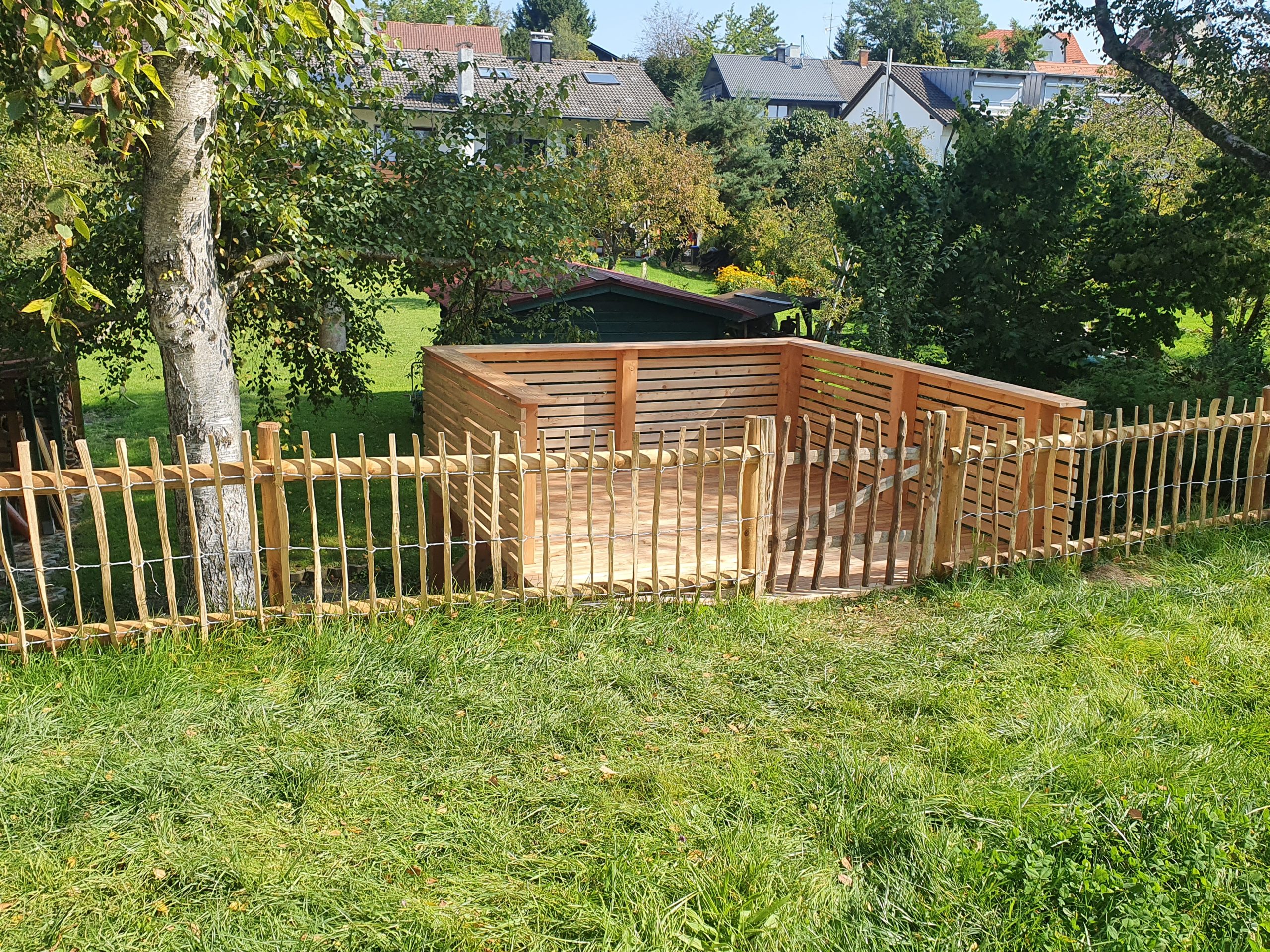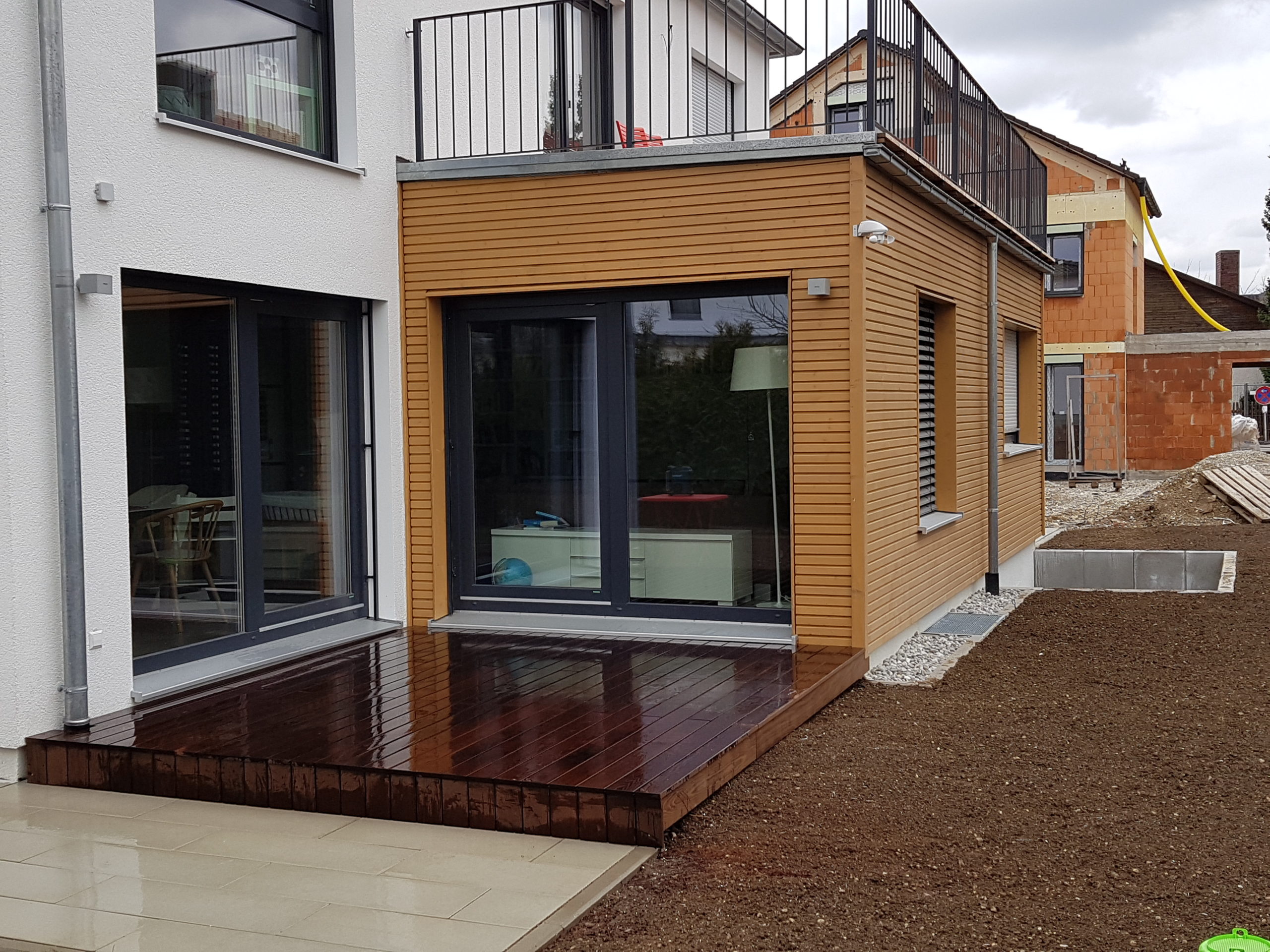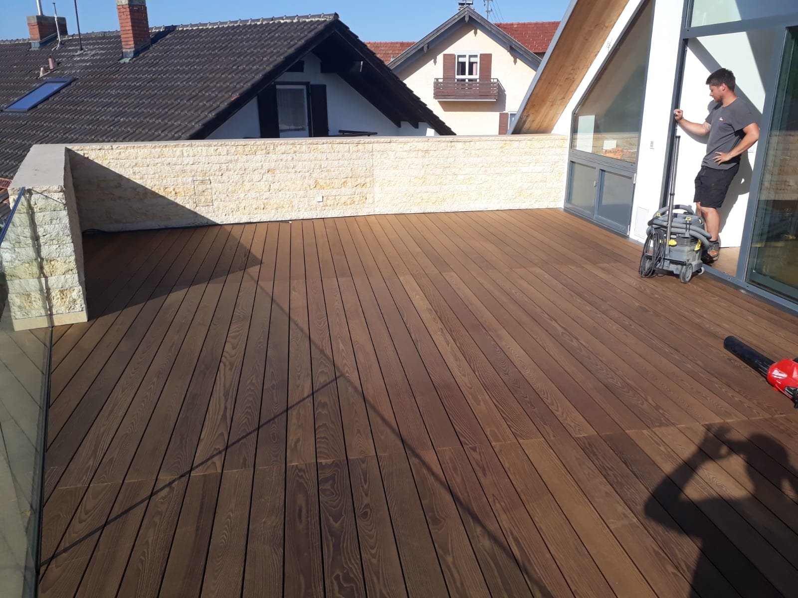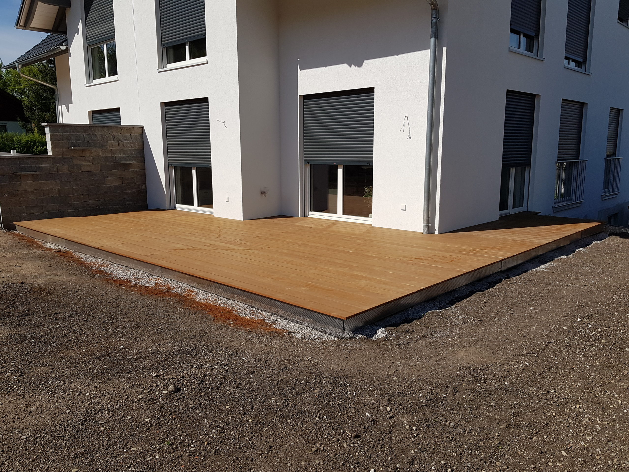- Erweitern Sie Ihr Wohnzimmer ins Grüne – mit einer langlebigen, stilvollen Holzterrasse zum Wohlfühlen.